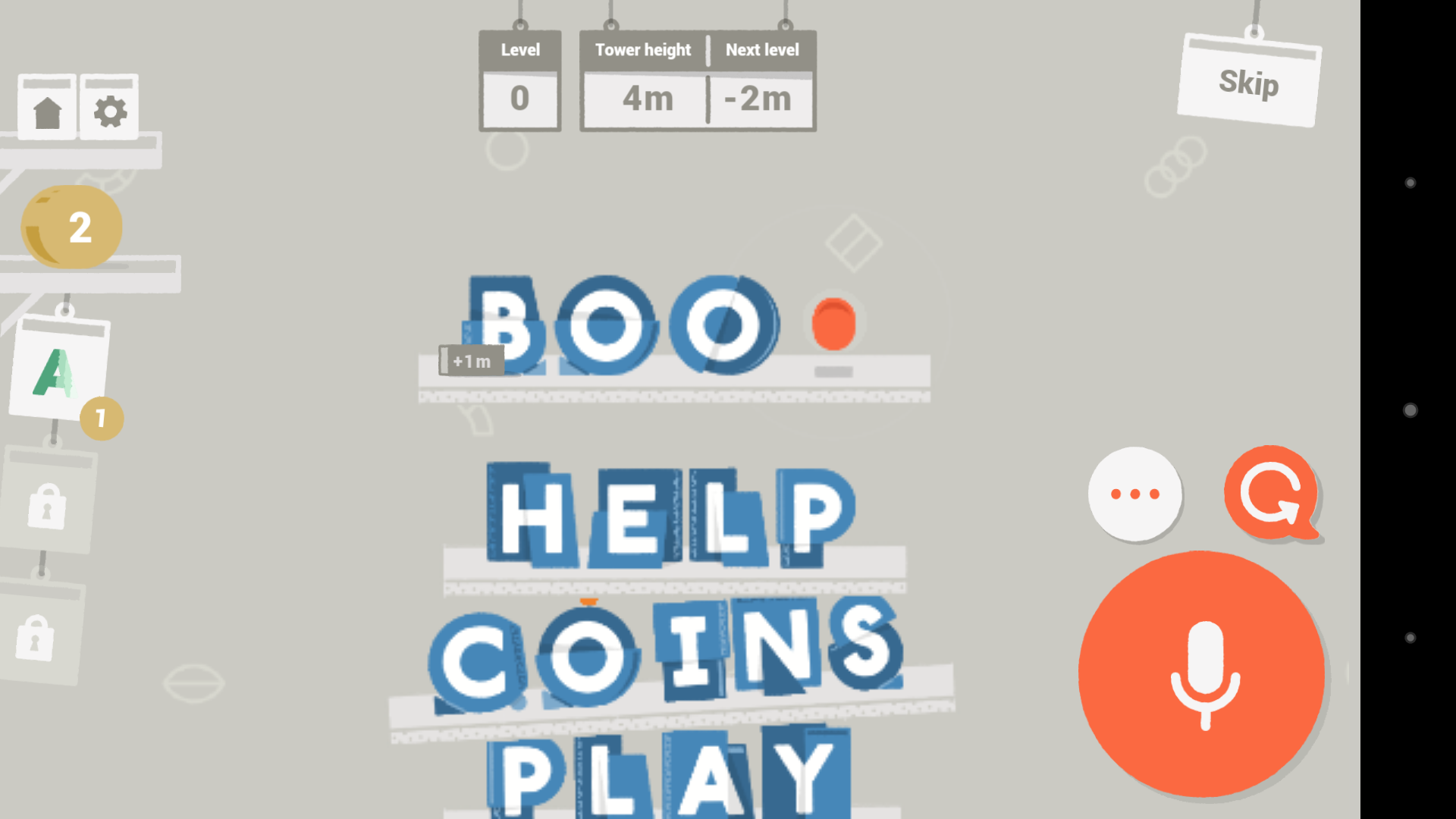 หลัà¸à¸à¸²à¸£à¹€à¸¥à¹ˆà¸™à¹€à¸à¸¡à¸™à¸µà¹‰à¸à¹‡à¸‡à¹ˆà¸²à¸¢à¹† เลย คืà¸à¸•ัวเà¸à¸¡à¸ˆà¸°à¸žà¸¹à¸”คำในภาษาà¸à¸±à¸‡à¸à¸¤à¸©à¸à¸à¸à¸¡à¸²à¸«à¸™à¸¶à¹ˆà¸‡à¸„ำ à¹à¸¥à¹‰à¸§à¹ƒà¸«à¹‰à¹€à¸£à¸²à¸ªà¸°à¸à¸”คำนั้นด้วยà¸à¸²à¸£à¸žà¸¹à¸”ตัวà¸à¸±à¸à¸©à¸£à¸ าษาà¸à¸±à¸‡à¸à¸¤à¸©à¸—ีละตัว เช่น ถ้าตัวเà¸à¸¡à¸žà¸¹à¸”คำว่า HELP à¸à¹‡à¹ƒà¸«à¹‰à¹€à¸£à¸²à¸žà¸¹à¸” H E L P ทีละตัว เมื่à¸à¸ªà¸°à¸à¸”คำได้ถูà¸à¸•้à¸à¸‡ คำนั้นà¸à¹‡à¸ˆà¸°à¸¡à¸²à¸à¸¢à¸¹à¹ˆà¹€à¸›à¹‡à¸™à¸à¸²à¸™à¸•รงด้านล่าง à¹à¸¥à¹‰à¸§à¸à¹‡à¸ˆà¸°à¹„ด้คำใหม่ที่เริ่มยาà¸à¸‚ึ้นเรื่à¸à¸¢à¹† ต่à¸à¹€à¸£à¸µà¸¢à¸‡à¸‚ึ้นไปด้านบน ถ้าพูดผิด คำที่เรียงๆ à¸à¸±à¸™à¸à¸¢à¸¹à¹ˆà¸à¹‡à¸ˆà¸°à¸–ล่มลงมา