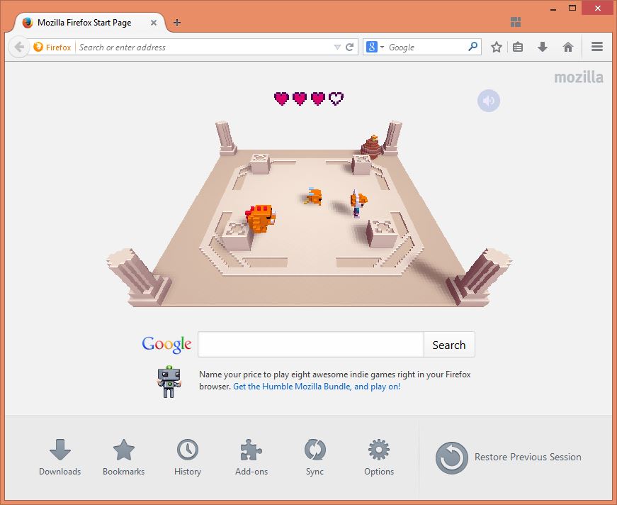 ช่วงนี้ใครที่เปิด Firefox น่าจะเห็นหน้า Start Page เป็นรูปตัวการ์ตูนตัวเหลี่ยมๆ พร้อมกับข้อความบอกให้ Click Me! ซึ่งเมื่อกดเข้าไปแล้วจะเป็นเกมที่ให้เราบังคับตัวละครไปยิงสัตว์ประหลาด