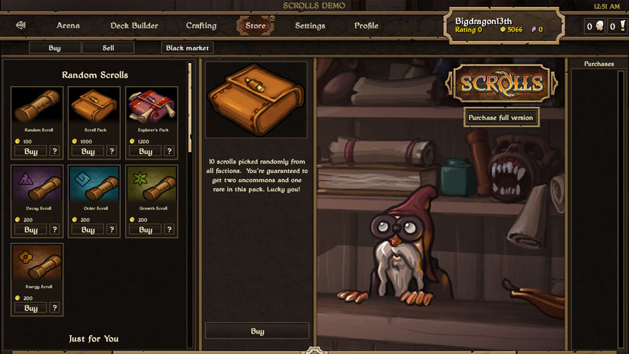 - Just for You จะเป็นส่วนที่เกมสุ่มการ์ดขึ้นมาขายเราโดยเฉพาะ เราสามารถเลือกซื้อการ์ดที่มีขายได้ตามต้องการ แต่จะแพงกว่าแบบสุ่มมาก ชุดการ์ดที่ขายนี้จะถูกสุ่มใหม่ทุกวัน