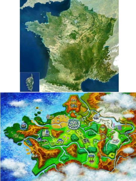 เป็นà¹à¸œà¸™à¸—ี่หลัà¸à¹ƒà¸™à¹€à¸à¸¡ Pokemon ภาค X&Y โดยà¸à¹‰à¸²à¸‡à¸à¸´à¸‡à¹à¸œà¸™à¸—ี่จาà¸à¸à¸£à¸±à¹ˆà¸‡à¹€à¸¨à¸ªà¹à¸œà¹ˆà¸™à¸”ินใหà¸à¹ˆ (Metropolitan France)