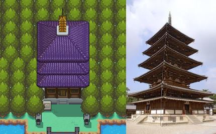 สถานที่ในเà¸à¸¡ Pokemon ภาคนี้ จะà¸à¹‰à¸²à¸‡à¸à¸´à¸‡à¸ˆà¸²à¸à¸ªà¸–านที่จริงเยà¸à¸°à¸¡à¸²à¸ ตัวà¸à¸¢à¹ˆà¸²à¸‡à¸ªà¸–านที่สำคัà¸à¹† เช่น Sprout Tower (หà¸à¸„à¸à¸¢à¹€à¸¡à¸·à¸à¸‡à¸¢à¸´à¸¡à¸™à¸ ที่มีพระà¸à¸¢à¸¹à¹ˆà¹€à¸¢à¸à¸°à¹† à¹à¸¥à¸°à¹ƒà¸Šà¹‰à¹à¸•่ Bellsprout มาสู้) à¸à¹‰à¸²à¸‡à¸à¸´à¸‡à¸ˆà¸²à¸à¸§à¸±à¸” Horyu-ji