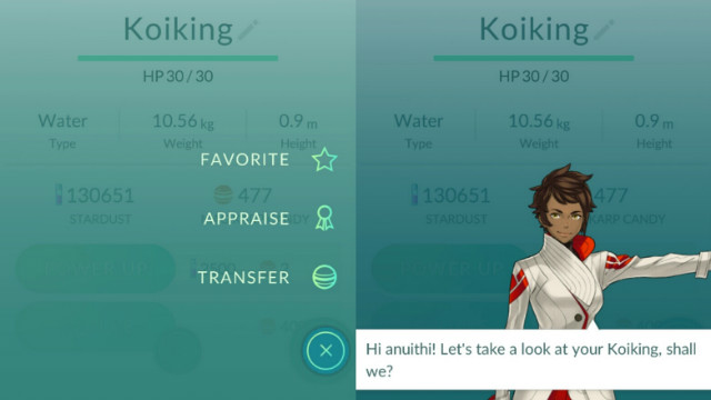 Pokémon Appraisal คืà¸à¸à¸²à¸£à¸™à¸³ Pokémon ขà¸à¸‡à¹€à¸£à¸²à¹„ปปรึà¸à¸©à¸²à¸à¸±à¸šà¸«à¸±à¸§à¸«à¸™à¹‰à¸²à¸—ีม หรืภTeam Leader ขà¸à¸‡à¹€à¸£à¸²à¸§à¹ˆà¸²à¹€à¸ˆà¹‰à¸² Pokémon ขà¸à¸‡à¹€à¸£à¸²à¸™à¸±à¹‰à¸™à¸¡à¸±à¸™à¹€à¸à¹ˆà¸‡à¸à¸²à¸ˆà¸‚นาดไหนà¸à¸±à¸™à¸„รับ โดยวิธีà¸à¸²à¸£à¸à¹‡à¸„ืà¸à¹ƒà¸«à¹‰à¹€à¸‚้าไปที่หน้าดูรายละเà¸à¸µà¸¢à¸”ขà¸à¸‡ Pokémon à¹à¸¥à¹‰à¸§à¸à¸”ที่ปุ่มเมนูด้านล่าง จาà¸à¸™à¸±à¹‰à¸™à¹€à¸¥à¸·à¸à¸ Appraise หลังจาà¸à¸™à¸±à¹‰à¸™à¸ˆà¸°à¸¡à¸µ Team Leader ขà¸à¸‡à¸—ีมที่เราเลืà¸à¸à¸à¸à¸à¸¡à¸²à¸§à¸´à¹€à¸„ราะห์ความสามารถขà¸à¸‡ Pokémon ขà¸à¸‡à¹€à¸£à¸²à¸§à¹ˆà¸²à¸à¸¢à¸¹à¹ˆà¹ƒà¸™à¸£à¸°à¸”ับไหน ซึ่งจะà¹à¸•à¸à¸•่างà¸à¸±à¸™à¸à¸à¸à¹„ปในà¹à¸•่ละทีมครับ โดยสิ่งที่ Leader จะพูด จะขึ้นà¸à¸¢à¸¹à¹ˆà¸à¸±à¸šà¸„่าสถานะเฉพาะตัวขà¸à¸‡ Pokémon ตัวนั้น ๆ