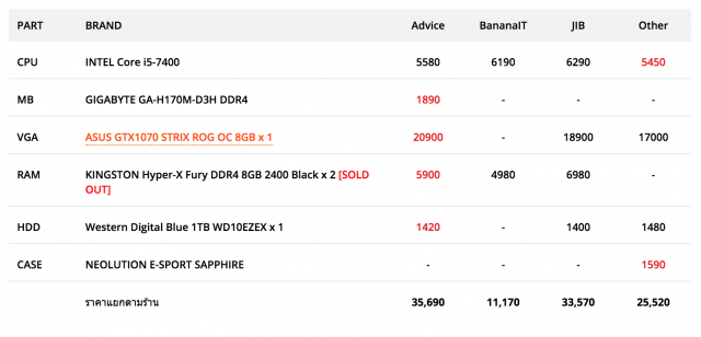 จะเห็นว่า CPU ที่ผมเลือกเป็น i5-7400 ตัวนี้ไม่ใช่ตัวที่ดีที่สุดนะครับ แต่เป็นตัวที่ผมคิดว่าคุ้มเงินที่จ่ายไปครับถ้าใครอยากจะปรับลดตัวไหน หรือมีคำแนะนำใด ๆ เพิ่มเติม บอกเข้ามาได้เลยครับ ตามแต่งบประมาณนี้เป็นแค่การจัดสเปคคร่าว ๆ พอให้เห็นแนวทางครับ